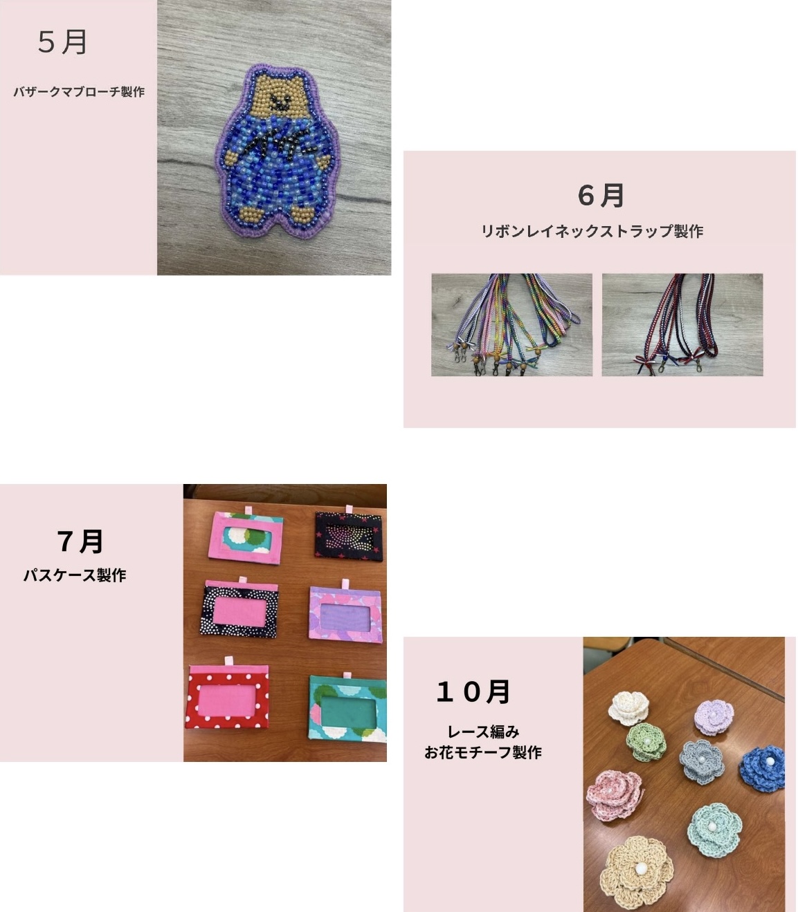 毎月1回、みんなでおしゃべりしながら、文化祭で販売する手作り作品を作っています
