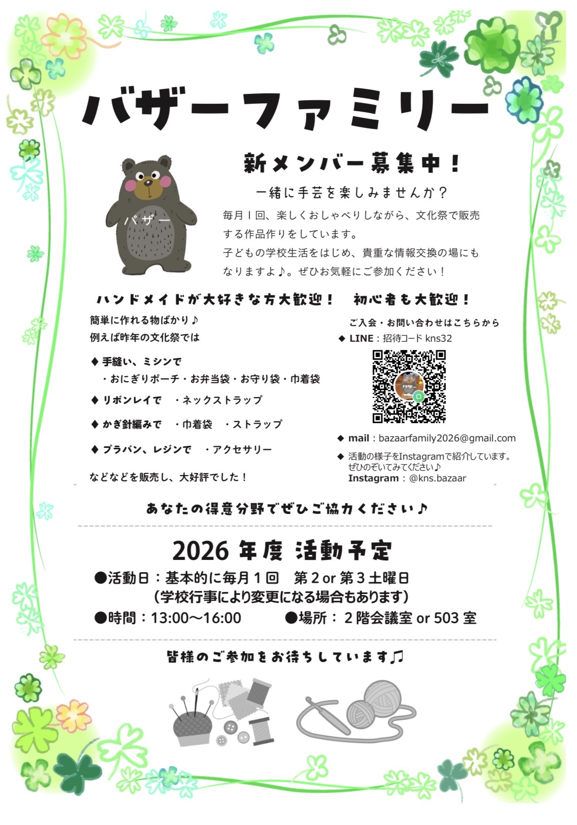 お子さんの学校生活にも役立つアイテムを作ったり、情報交換の場にもなりますよ♪